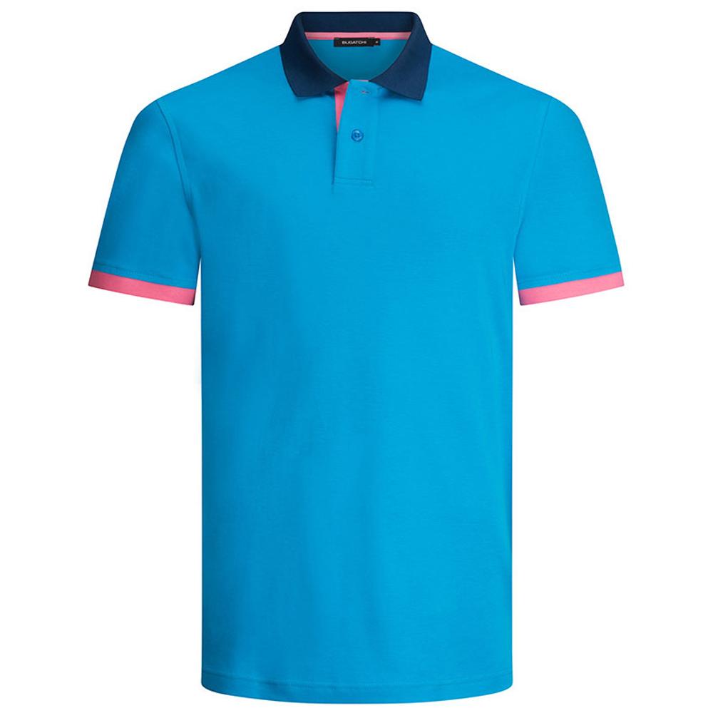 A custom polo is a must have for everyone and the Bugatchi Men's Turquoise Short Sleeve Two Button Polo Collar is no exception. A patriotic look with the red body, blue color, and white sleeve cuffs means your company logo can truly stand out on this designer luxury polo that will look create as part of a layered look or to wear alone on the golf course. These would also make a great employee gift to celebrate a special occasion as high end gifts are always welcomed. For those employees that need to look very professional, these make highly useful employee apparel that will stand the test of time. Place your order today.Highlights