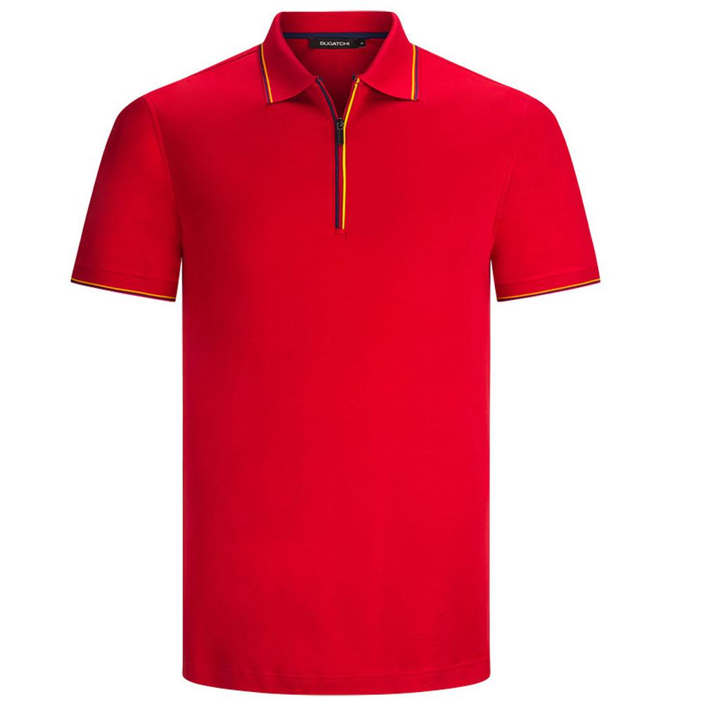 Be stylish with a custom designer look in the Bugatchi Men's Dark Ruby Short Sleeve Half Zip Polo Collar. The solid color with accent collar and sleeve cuffs will carry your company logo with precision and flair as you wear this as corporate apparel that easily transitions to the golf course. Excellent for layering with a jacket or sweater, the short sleeve polo offers a half zip design for that little bit of extra. Choose your embroidery design and use these as high end gifts of employee apparel or even employee gifts for any special occasion. The unique color will really stand out and become an instant favorite.Highlights