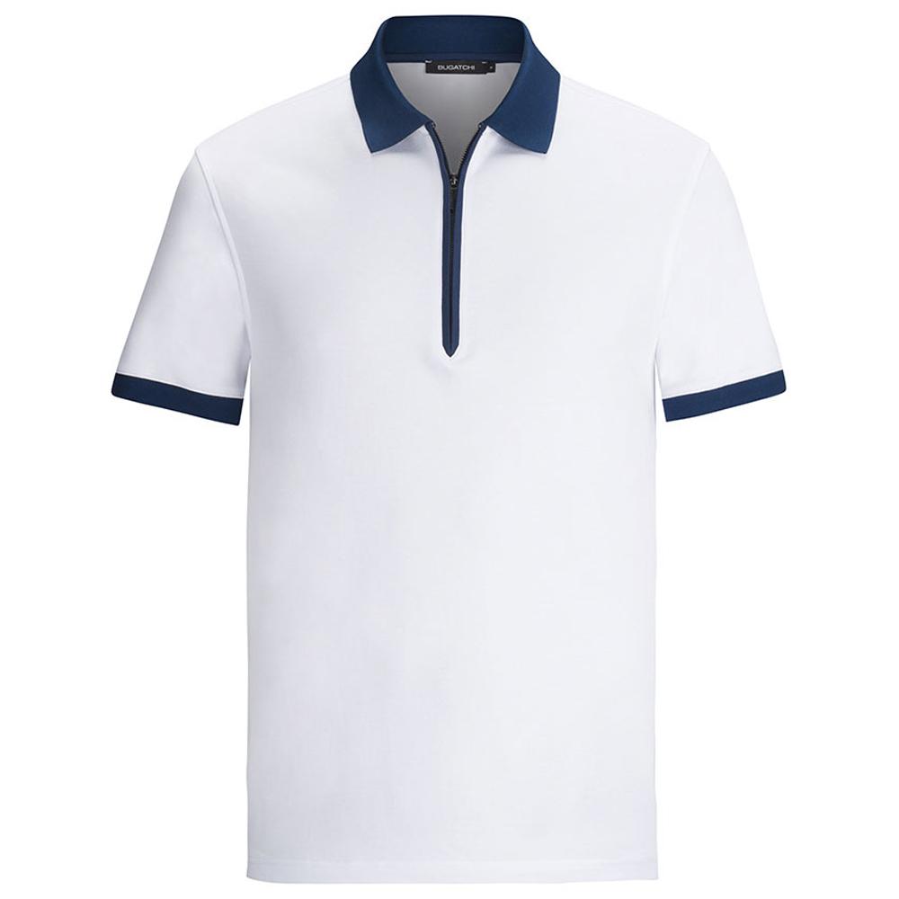 Be stylish with a custom designer look in the Bugatchi Men's White Short Sleeve Half Zip Polo Collar. The solid color with accent collar and sleeve cuffs will carry your company logo with precision and flair as you wear this as corporate apparel that easily transitions to the golf course. Excellent for layering with a jacket or sweater, the short sleeve polo offers a half zip design for that little bit of extra. Choose your embroidery design and use these as high end gifts of employee apparel or even employee gifts for any special occasion. The unique color will really stand out and become an instant favorite.Highlights