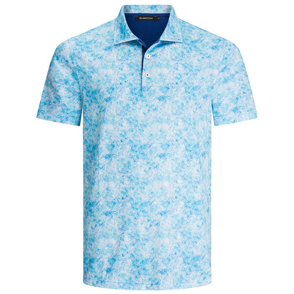 Create your custom look with the Bugatchi Men's Light Turquoise Short Sleeve Three Button Self Collar. A unique look for corporate apparel, add your custom logo to use as a daily office wear or to show off on the golf course. The interesting print will draw the eye of all who see which means this short sleeve shirt could serve as employee apparel with a corporate logo if needed. Offer these embroidered button collar shirts as gifts for the holidays or next big event. No matter your need, these shirts will work to show off both your company and your brand with a logo designed by you. Place your order today.Highlights