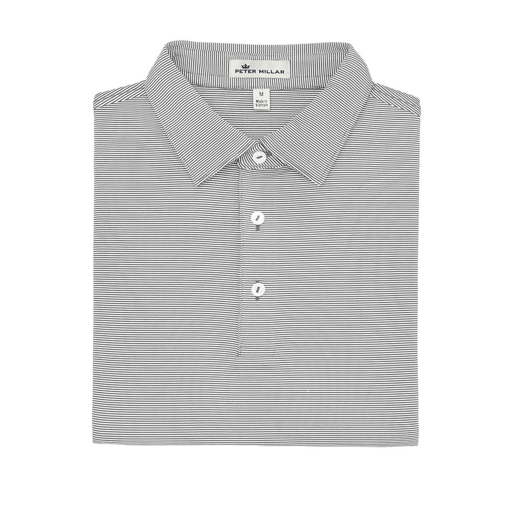 This crisp Peter Millar Men's Iron Jubilee Stripe Stretch Jersey Polo with Self Sean Collar is lightweight, breathable, quick-drying and stretches four ways for maximum comfort. Stay cool in the moisture-wicking jersey and enjoy the easy-care and odor control finish on the golf course and beyond.