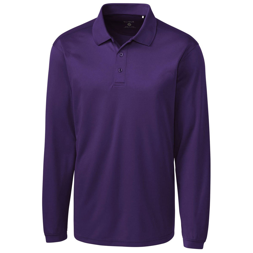 Raise the company apparel bar higher by making the versatile Clique Men's College Purple Long Sleeve Ice Pique Polo the new employee uniform. The long sleeve shirt brings short sleeve polo panache, while delivering functionality by offering you the ultimate apparel for layering. Wear the long sleeve polo over a Clique tee or as the middle layer of a cold weather fashion ensemble. Moisture wicking fabric ensures the skin remains dry throughout the day. Tear away the label and add a custom logo on the embroidery area. Forward shoulders present a dignified look that will attract the attention of your professional peers.Corresponding Women's Style: Clique Women's College Purple Long Sleeve Ice Pique Polo