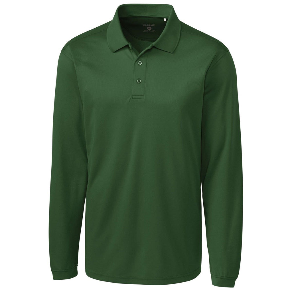 Raise the company apparel bar higher by making the versatile Clique Men's Bottle Green Long Sleeve Ice Pique Polo the new employee uniform. The long sleeve shirt brings short sleeve polo panache, while delivering functionality by offering you the ultimate apparel for layering. Wear the long sleeve polo over a Clique tee or as the middle layer of a cold weather fashion ensemble. Moisture wicking fabric ensures the skin remains dry throughout the day. Tear away the label and add a custom logo on the embroidery area. Forward shoulders present a dignified look that will attract the attention of your professional peers.Corresponding Women's Style: Clique Women's Bottle Green Long Sleeve Ice Pique Polo