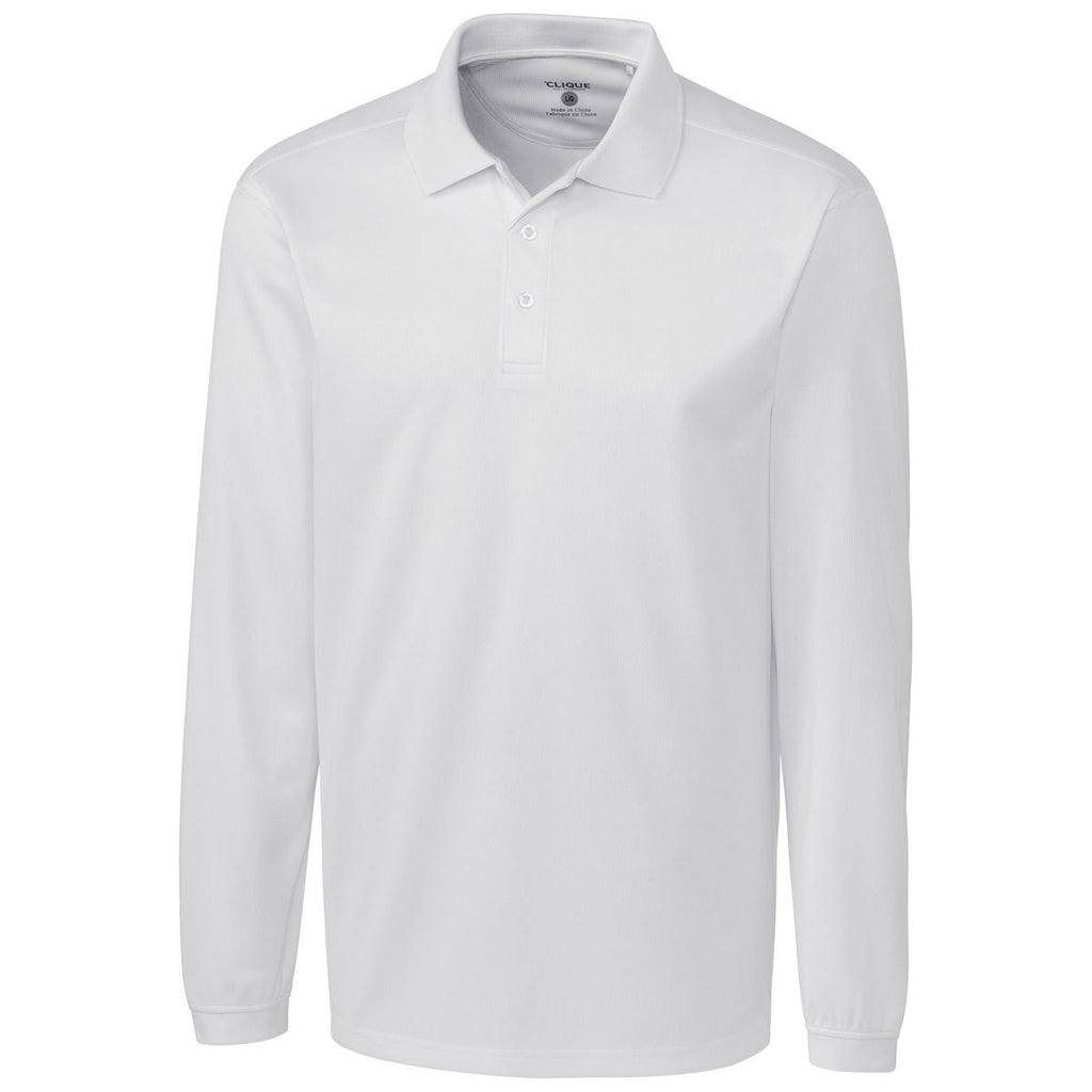 Raise the company apparel bar higher by making the versatile Clique Men's White Long Sleeve Ice Pique Polo the new employee uniform. The long sleeve shirt brings short sleeve polo panache, while delivering functionality by offering you the ultimate apparel for layering. Wear the long sleeve polo over a Clique tee or as the middle layer of a cold weather fashion ensemble. Moisture wicking fabric ensures the skin remains dry throughout the day. Tear away the label and add a custom logo on the embroidery area. Forward shoulders present a dignified look that will attract the attention of your professional peers.Corresponding Women's Style: Clique Women's White Long Sleeve Ice Pique Polo