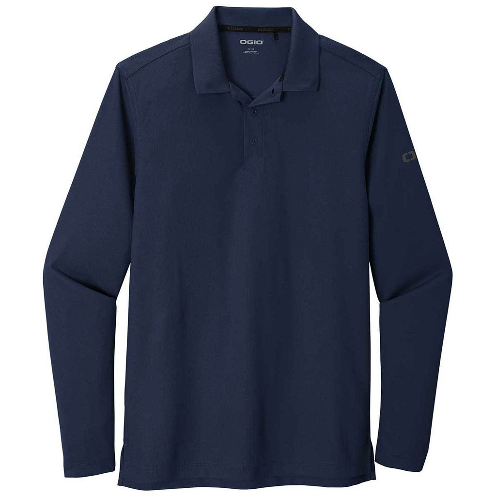 Take your polo a step further with a custom embroidered OGIO Men's Navy Caliber 2.0 Long Sleeve Polo. Perfect for corporate events in which you need to make a great impression, this custom polo is a must have. Made of 100% poly pique with stay cool wicking technology, this long sleeve polo will keep you looking great whether in a meeting or playing the back nine. The flat knit collar and 3 button placket top off the professional look that can be layered as needed. Add a custom logo to create a company uniform for employees or offer these excellent polos as end of the year gifts.Highlights