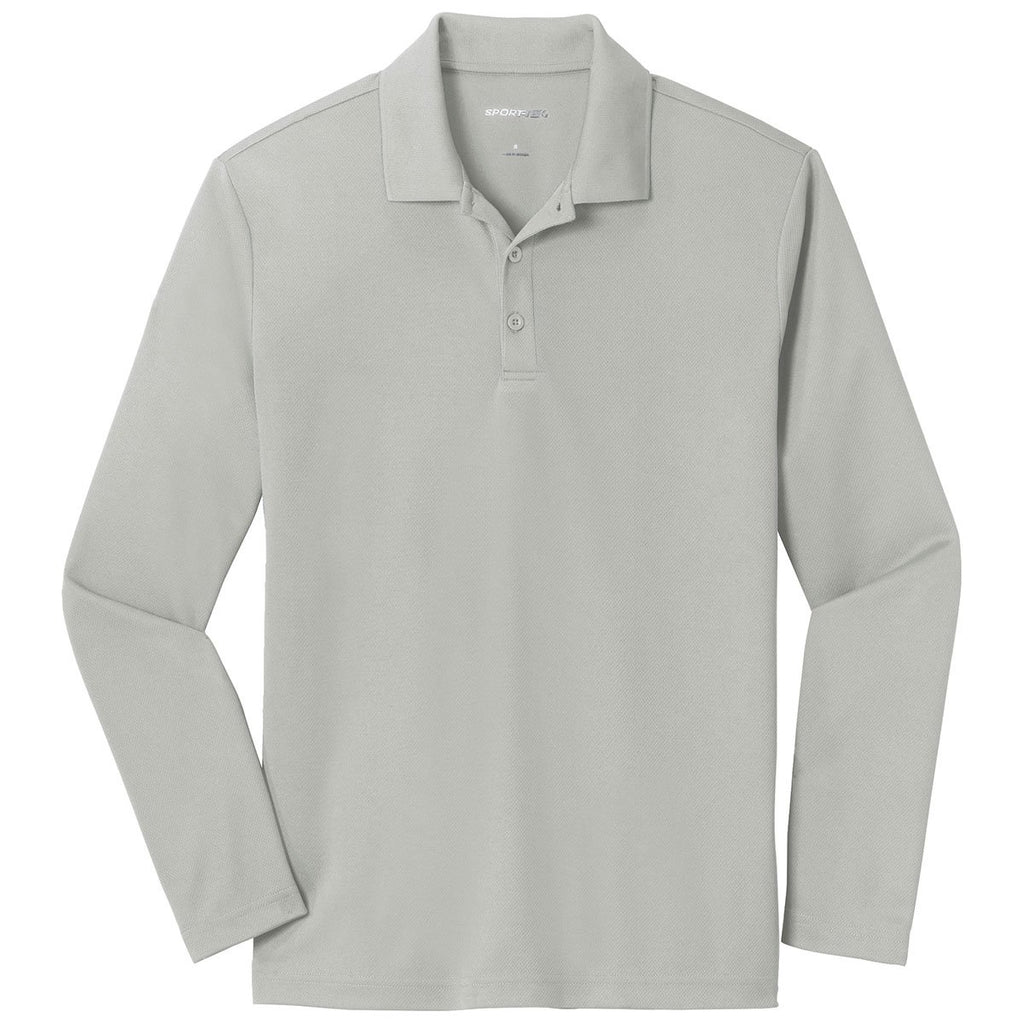 Thanks to a large embroidered area, the custom logoed Sport-Tek Men's Silver PosiCharge RacerMesh Long Sleeve Polo will deliver a highly effective marketing message at the next professional networking event. Because of proprietary RacerMesh technology, the stylish polo offers unsurpassed breathability to ensure your team remains comfortably dry at outdoor corporate events. The sleek flat-knit collar exudes panache, while dyed-to-match buttons present a refined appearance worthy of accomplished professionals. Add your company logo to spread the word about your products and services. The 100% polyester fabric resists rips and tears to ensure long lasting durability.Highlights