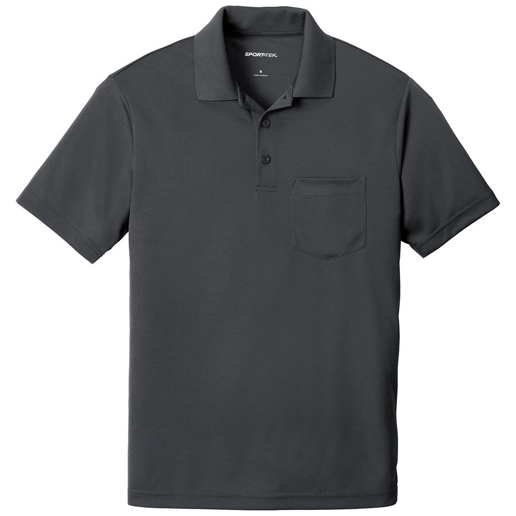 Due to the super fine flat back RacerMesh fabric, the company logoed Sport-Tek Men's Graphite Grey PosiCharge RacerMesh Pocket Polo delivers optimal breathability to ensure all day comfort. Superior cooling turns a hot, humid day into your advantage by keeping you feeling incredibly fresh. Patented PosiCharge technology prevents the bright colors from bleeding during wash cycles. Rip and tear resistant polyester fabric gives you a go to polo for years to come. Add a custom logo to present an embroidered marketing sensation at the next industry trade show. The three-button placket presents a visually appealing appearance that gets your team noticed.Highlights