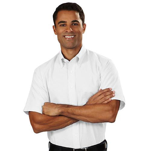 The short sleeved shirt is making a comeback in a major way, and it's articles like this Van Heusen Men's White Short Sleeve Oxford Shirt-Numeric Sized that are leading the way. They're crisp, thanks to a wrinkle free construction that keeps them ready throughout the week, and with easy-care fabric comprising their material, you'll have no problem getting multiple uses out of them. In this short sleeve shirt's case, a 60-40 cotton/poly blend offers both comfort and the strength necessary to get through the work week which you know all about. Add a custom corporate logo to fashion this short sleeve shirt into a promotional, branding item.