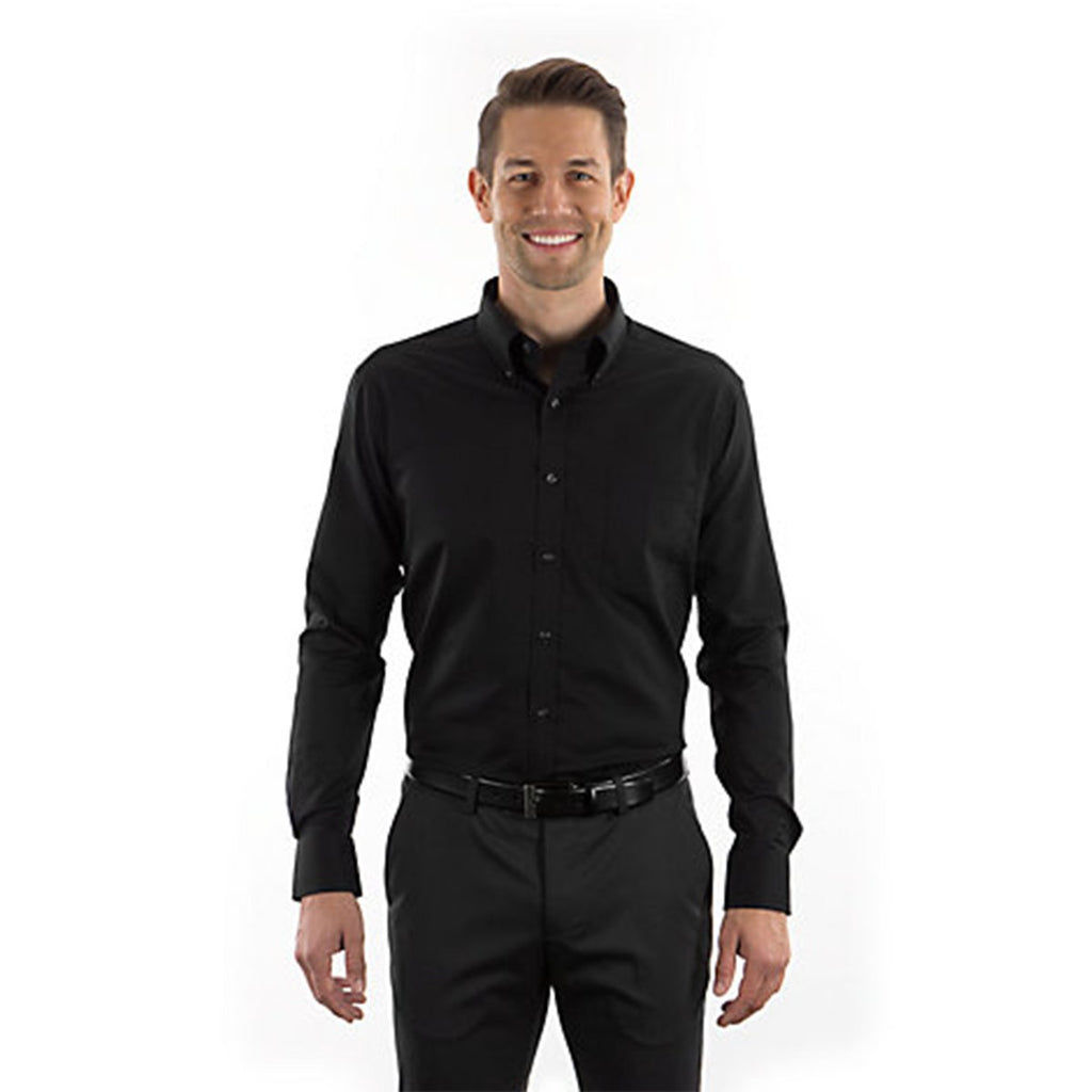 Van Heusen Men's Black Slim Fit Twill Shirt can help your employees get to work faster and feel more comfortable while they're at work. These shirts are designed to fit the contours of the body. With no excess fabric to adjust, they're easier for guys to tuck in when they're dressing up for work. They're available in black or white, which provides a nice contrast for your company logo if you're looking for sleek company uniforms. An employee name could even be embroidered on the chest. If you're recruiting young talent, the Van Heusen Men's Slim Fit Twill would look great on recent college graduates entering the corporate environment and they'd make great employee gifts for your current workforce.Highlights