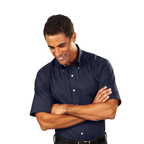 Let's break out of the normal office wear for a moment, shall we? Good. We're glad you agree. Because we're about to introduce you to the Van Heusen Men's Navy Twill Short Sleeve Dress Shirt and, well, we think you'll like it. Maybe that's because it's wrinkle free, making it ideal for wearing during the work week with minimal upkeep. Maybe that's because it's got a chest pocket so you can easily dress it up with a jacket when needed. Maybe that's because you can easily add your custom logo to the front and brand it according to your small business. Maybe it's all of the above.