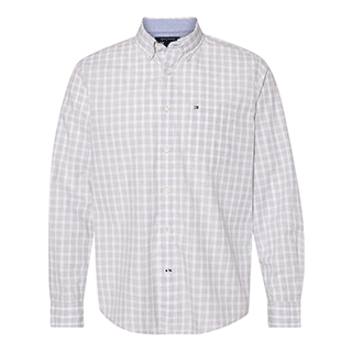 The company logo Tommy Hilfiger Men's Bright White Stall Check Long Sleeve Plaid Shirt is a cool and casual shirt to purchase for your corporate apparel wear. With features such as a well-fitting 100% cotton material, stylish button-down collar, two-button adjustable cuffs, contrast neck yoke trim, and the signature Tommy Hilfiger logo, this men's plaid shirt is sure to please. Take your pick of three classic colors and purchase this classy embroidery logo clothing item in bulk to hand out to participants at your upcoming golf events and trade shows.Highlights
