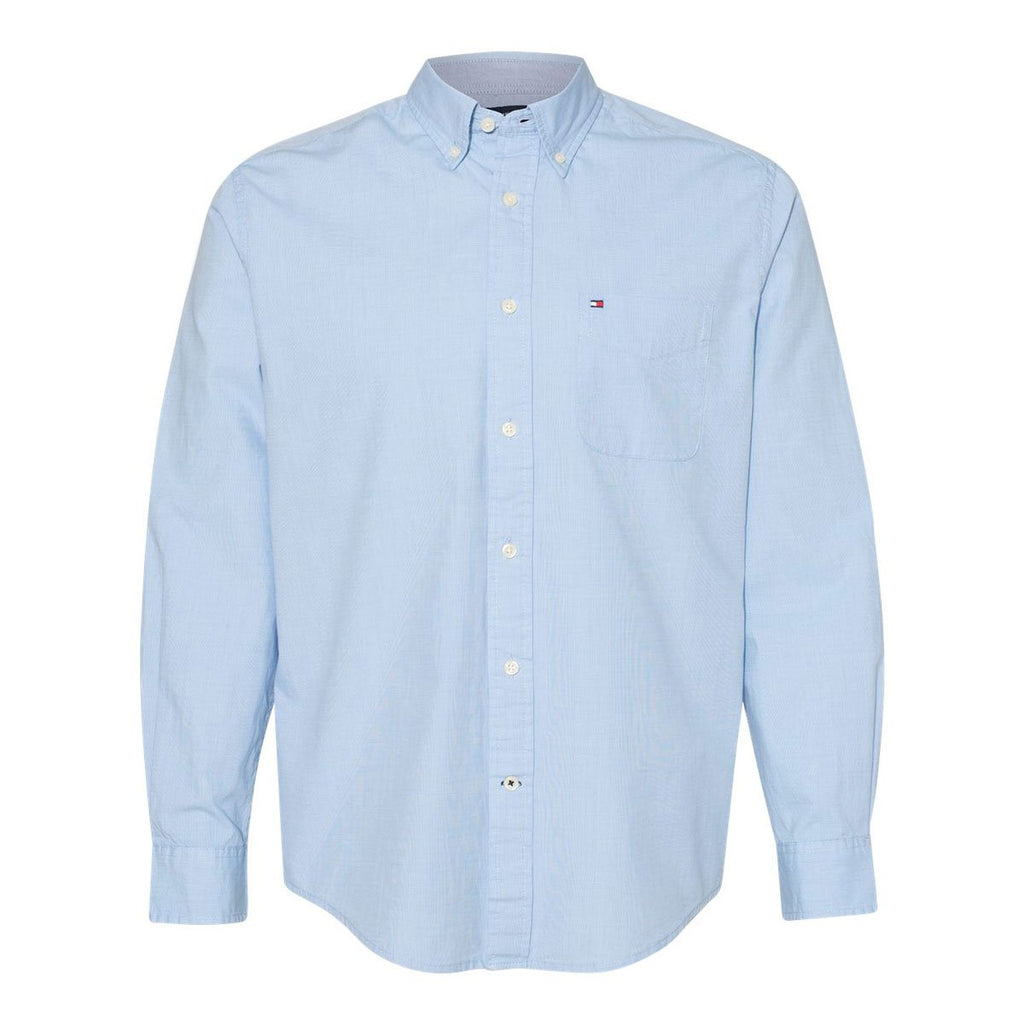 The logoed Tommy Hilfiger Men's Collection Blue Capote End-on-End Chambray Shirt exudes style and class. Features such as a comfortable 100% cotton material, fashionable button-down collar, contrast trim on the neck yoke, two-button adjustable cuffs, three eye-catching colors to choose from, and signature Tommy Hilfiger logo on the left chest pocket make this an ideal embroidery logo shirt to buy. With your company logo added to this must-have shirt, the end result is the perfect clothing item to purchase to hand out as corporate apparel gifts to your loyal employees and distribute at upcoming recruiting events for future employees to enjoy.Highlights