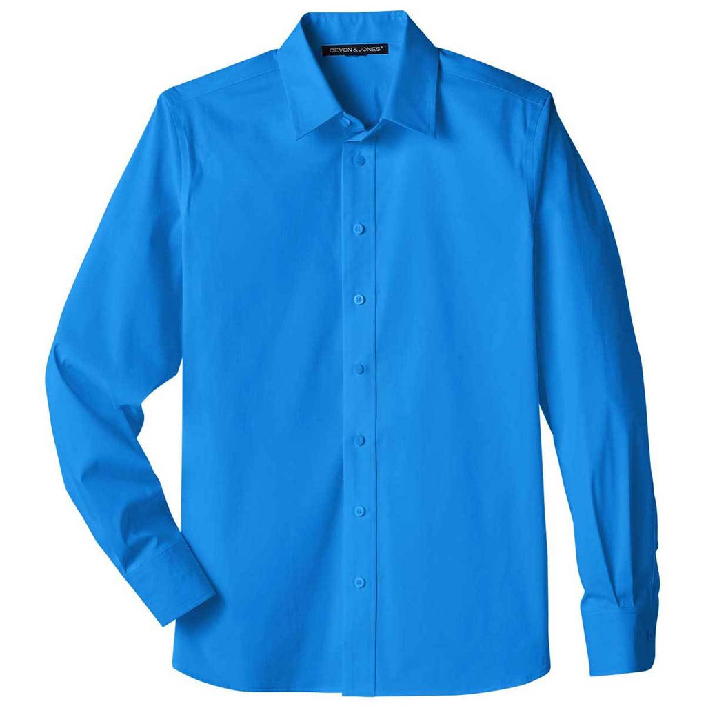 A custom embroidered look that is meant to be untucked is found in the Devon & Jones Men's French Blue Crown Collection Stretch Broadcloth Untucked Shirt. Add a company logo to this button up to create company uniforms or a collective look for all in an organization. The ideal choice for a corporate event that is both professional and comfortable with pucker free seams, an adjustable collar, and a slim fit, this shirt is a must have for every professionals wardrobe. Adding a company logo even allows these well made pieces to serve as end of the year gifts for friends and employees.Highlights