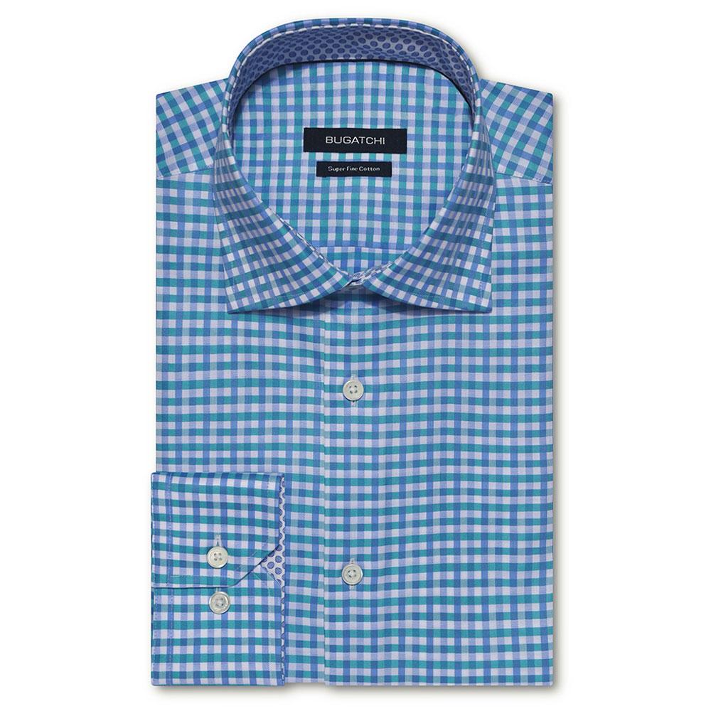Bugatchi Men's Emerald Long Sleeve Point Collar French Placket No Pocket