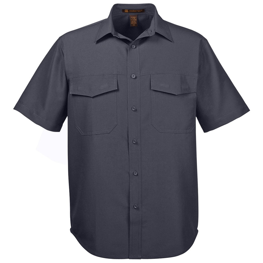 Not one, but two chest pockets make the Harriton Men's Dark Charcoal Key West Short-Sleeve Performance Staff Shirt perfect for busy professionals. Store your Smartphone in one of the pockets for instant access and use the other pocket to clip a pen or add a pad of small notebook paper. One-hundred percent polyester rip stop endures the punishment of frequent use. The back vent system allows air to circulate for enhanced breathability. Polyester mesh located in the upper back section of the staff shirt cools the skin. Add a custom logo on the large imprint area to publicize your company.Corresponding Women's Style: Harriton Women's Dark Charcoal Key West Short-Sleeve Performance Staff Shirt