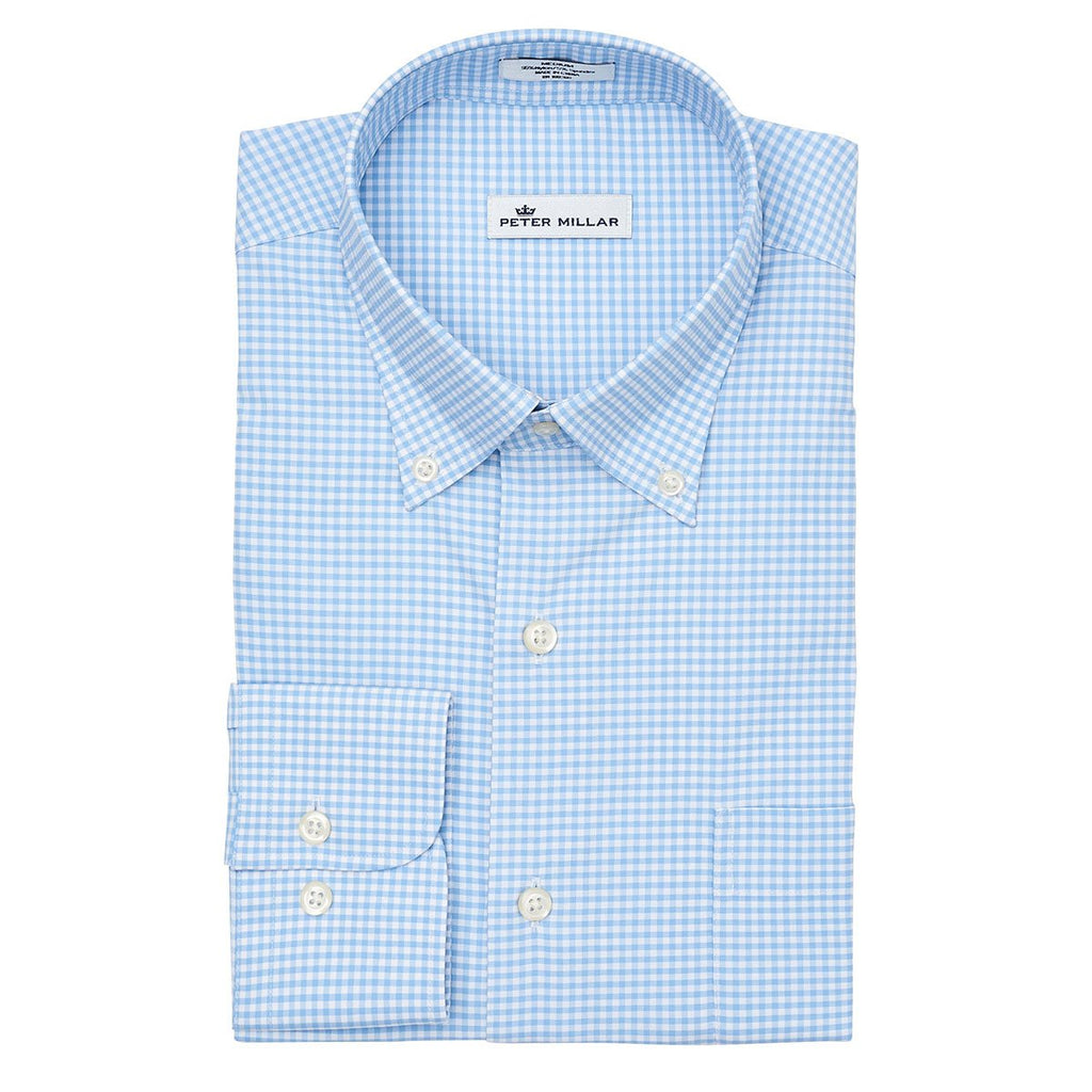 Style and functionality come together in the Peter Millar Men's Cottage Blue Mimi Performance Check Woven sport shirt in a checkered pattern. Perfect for layering or to wear alone as the weather starts to cool down. Add a custom logo embroidery to show company alliance and offer easy to wear advertising. AN ideal offer as a high-end gift for customers or to use as employee girls or apparel. Styled with double button barreled cuffs and a left chest pocket, this shirt will look great as you play a round of golf or enter a high-profile business meeting. With exceptional breathability and moisture management this shirt will stay fresh throughout the day. You could not ask for more in a shirt that can serve as employee apparel or as every day wear. Order yours today.There is a 24 piece minimum for Peter Millar brand. You can mix and match colors and styles to reach this minimum.