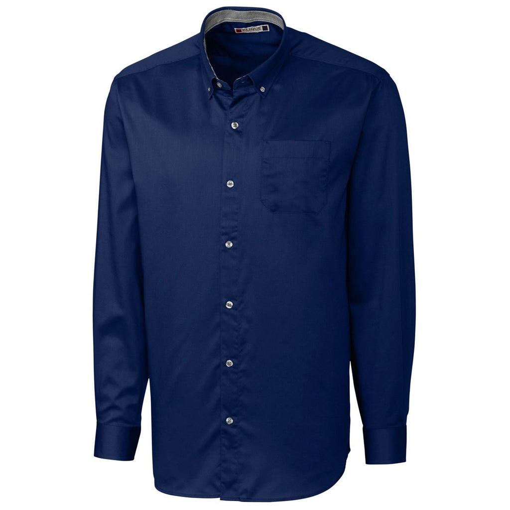 If your team of dedicated employees often works in the field, order the custom logoed Clique Men's Navy Long Sleeve Bergen Stain Resistant Twill to ensure they put their best fashion feet forward. The polyester and cotton twill long sleeve shirt resist stains caused by accidental beverage spills. With a curved hem, you wear company apparel that impresses everyone you meet at industry trade shows. Attach your corporate logo on the large embroidery area to impress everyone with your products and services. Wear the button down collar shirt to a business meeting and keep it on afterwards when you and your professional peers mingle at your favorite watering hole.Highlights