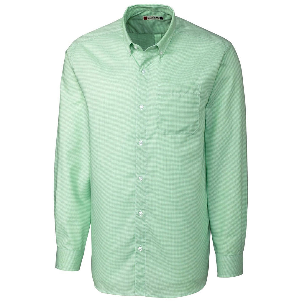 Hand out the perfect employee uniform to your team by ordering the Clique Men's Sea Green/White Long Sleeve Granna Stain Resistant Houndstooth Shirt. Do you remember the embarrassment of wearing company apparel that had the morning coffee prominently displayed on the front of the fabric? The Houndstooth long sleeve shirt prevents stains from diminishing your professional appearance. With a texture weave, the cotton and polyester shirt weaves an attractive appearance that will get you noticed at civic events. Take advantage of the attention by adding your company logo on the embroidery area. With a custom logo, you reach more customer prospects at sales conferences.