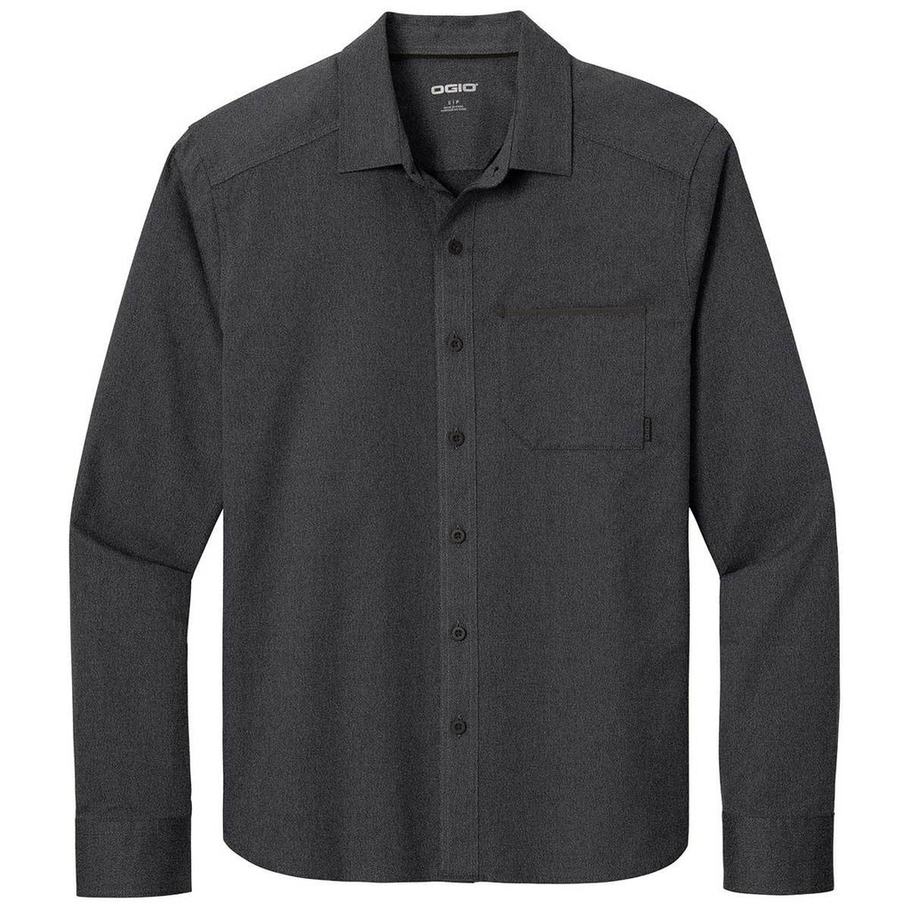 The professional world has gone urban with the custom embroidery OGIO Men's Blacktop Urban Shirt. This distinctive custom design is made with marled cotton, poly yarn for a look that works for a night out or a long day at the office. Created to be worn untucked, the custom, stay cool wicking technology button up is perfect as part of a company uniform. The woven OGIO badge at the pocket and back collar display the quality of the product no matter where it is worn. Choose your embroidery of choice to add to this urban shirt and offer these as end of the year gifts or employee gifts for a job well done.Highlights