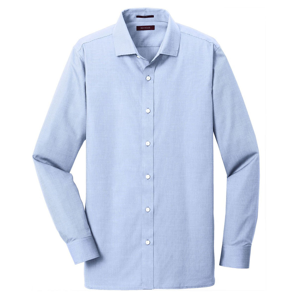 Companies in search of the perfect uniform for the hard working professionals that finalize sales deals in the field should order the embroidered Red House Men's Blue Pearl Slim Fit Nailhead Non-Iron Shirt. Simply wash and dry the stylish shirt and enjoy a wrinkle free appearance that never requires the use of an iron. The super comfortable silk-like feel of the corporate shirt keeps your team feeling fresh throughout long work days. Polyester blended with soft cotton resists rips and tears to make the apparel the best choice for professionals that get their hands dirty on the job. Add your company logo to create walking billboards for your brand.Corresponding Women's Style: Red House Women's Blue Pearl 3/4-Sleeve Nailhead Non-Iron Shirt