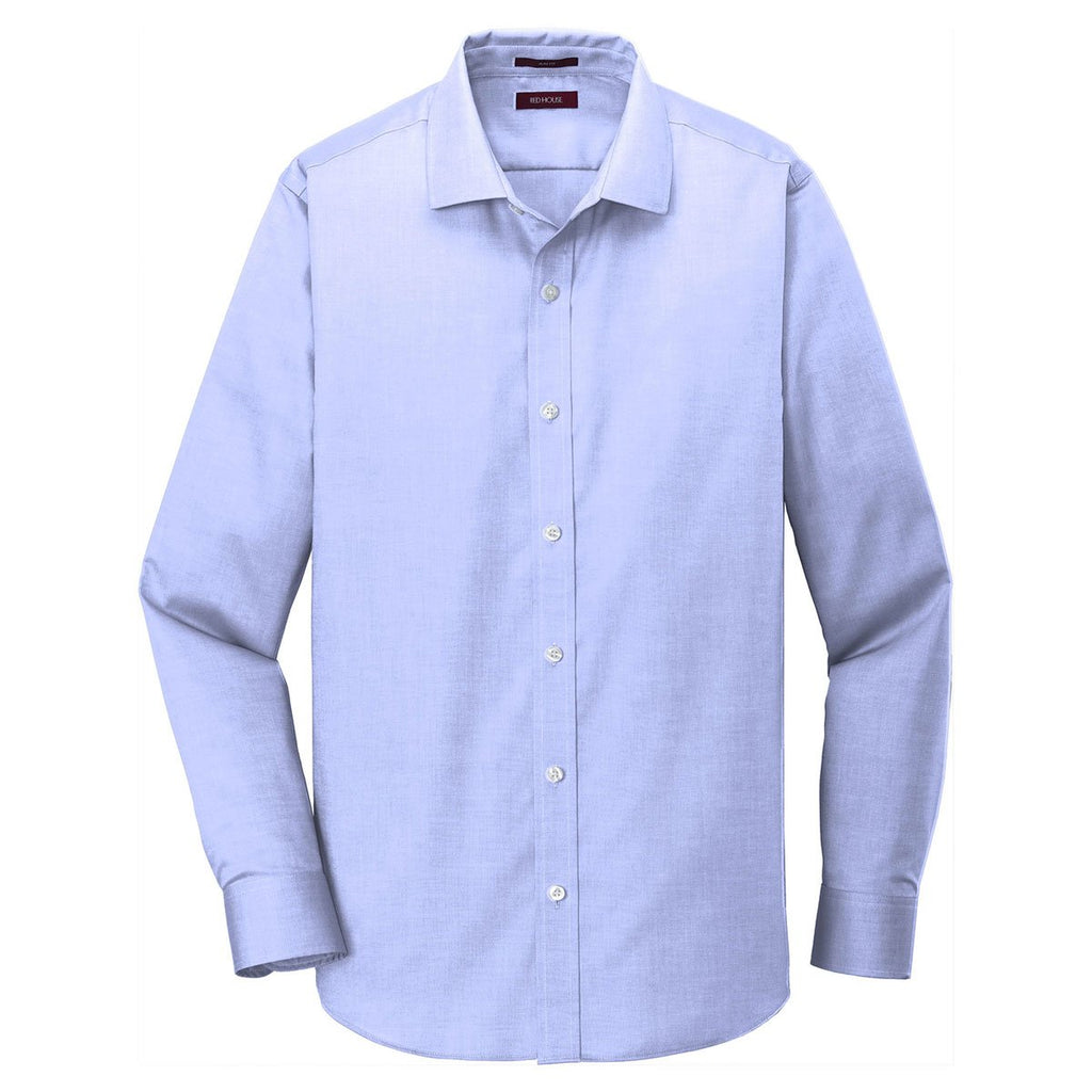 Present a slim fit every time you put on the embroidered Red House Men's Blue Slim Fit Pinpoint Oxford Non-Iron Shirt. The Oxford button-down shirt commands the attention of the job candidates you meet at corporate recruiting events. Give away the stylish shirt to job candidates and make sure to add a custom logo to create dozens of cost effective marketing platforms for your company. Smooth 100% cotton fabric resists rips and tears to give you go to company apparel for years to come. Single needle stitching allows the design of the shirt to shine at business seminars and conferences.Highlights