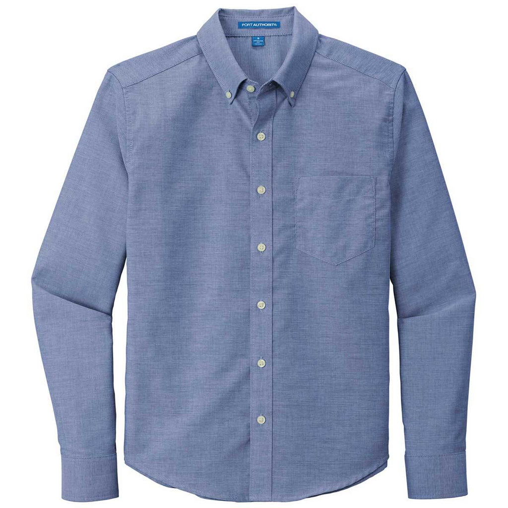 Enjoy untucked custom comfort in a classic style with the Port Authority Men's Navy Untucked Fit SuperPro Oxford Shirt. Choose a company logo to add to these tried and true oxfords to use as a company uniform shirt or simply to add to your own wardrobe. The slimmer fitting oxford is made to be worn untucked while remaining professional. Perfect as an end of the year gift or employee gift, these shirts are wrinkle free and designed to resist and release stains to help maintain the professional look whether at an all day corporate event or hosting a backyard BBQ.