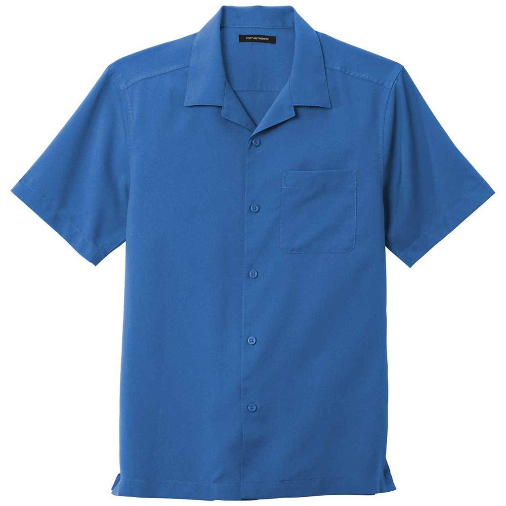 Look and stay cool in a custom Port Authority Men's True Blue Short Sleeve Performance Staff Shirt. Add a company logo to these 100% polyester short sleeve shirts to use as company uniforms. The camp collar and styling matched with the odor fighting and moisture wicking technology allows this shirt to be functional whether enjoying a relaxing meal or a stressful meeting. Easy to pair with a blazar or sweater, this shirt has stain release, a left chest pocket, and side vent for easy wear and comfort. Add a corporate logo for corporate events or everyday company uniforms.