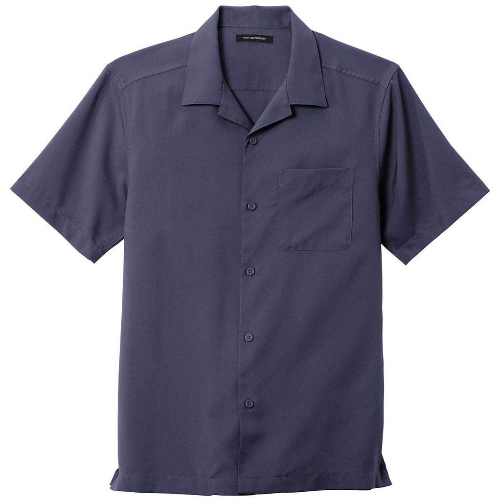 Look and stay cool in a custom Port Authority Men's True Navy Short Sleeve Performance Staff Shirt. Add a company logo to these 100% polyester short sleeve shirts to use as company uniforms. The camp collar and styling matched with the odor fighting and moisture wicking technology allows this shirt to be functional whether enjoying a relaxing meal or a stressful meeting. Easy to pair with a blazar or sweater, this shirt has stain release, a left chest pocket, and side vent for easy wear and comfort. Add a corporate logo for corporate events or everyday company uniforms.