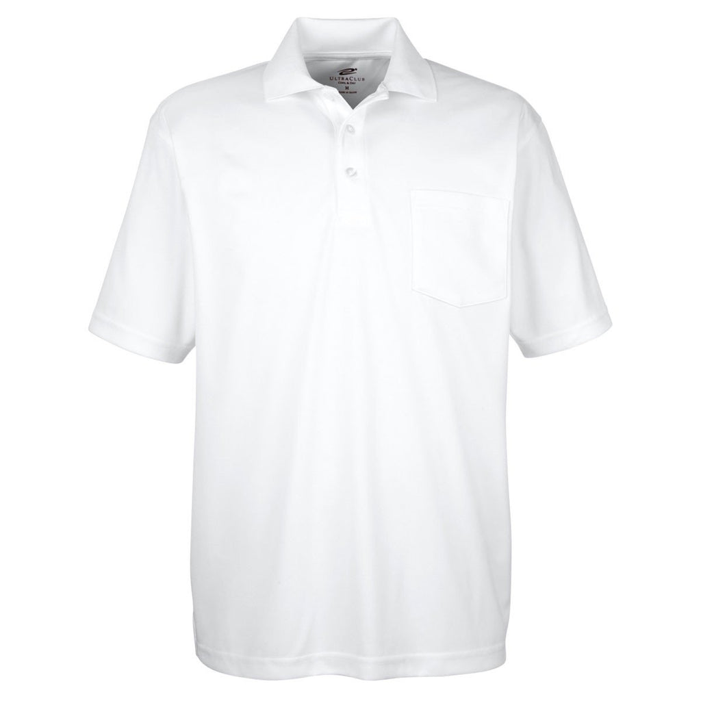 UltraClub Men's White Cool & Dry Mesh Pique Polo with Pocket