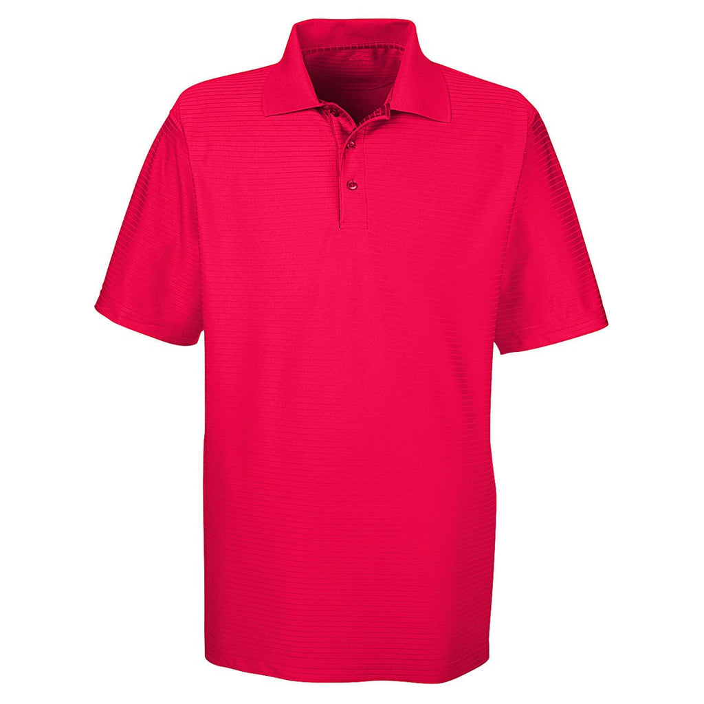 UltraClub Men's Red Cool & Dry Elite Tonal Stripe Performance Polo