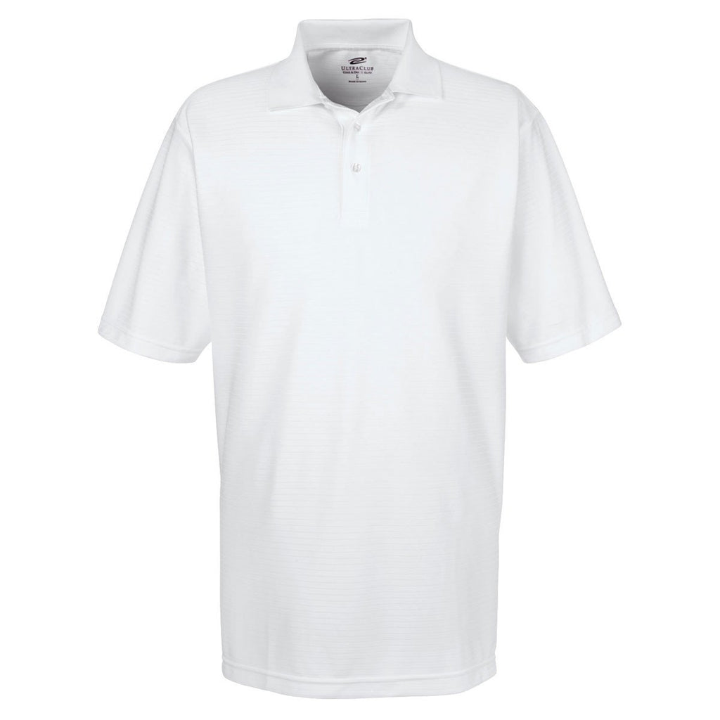 UltraClub Men's White Cool & Dry Elite Tonal Stripe Performance Polo