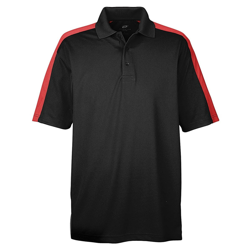 UltraClub Men's Black/Red Cool & Dry Stain-Release Two-Tone Performance Polo