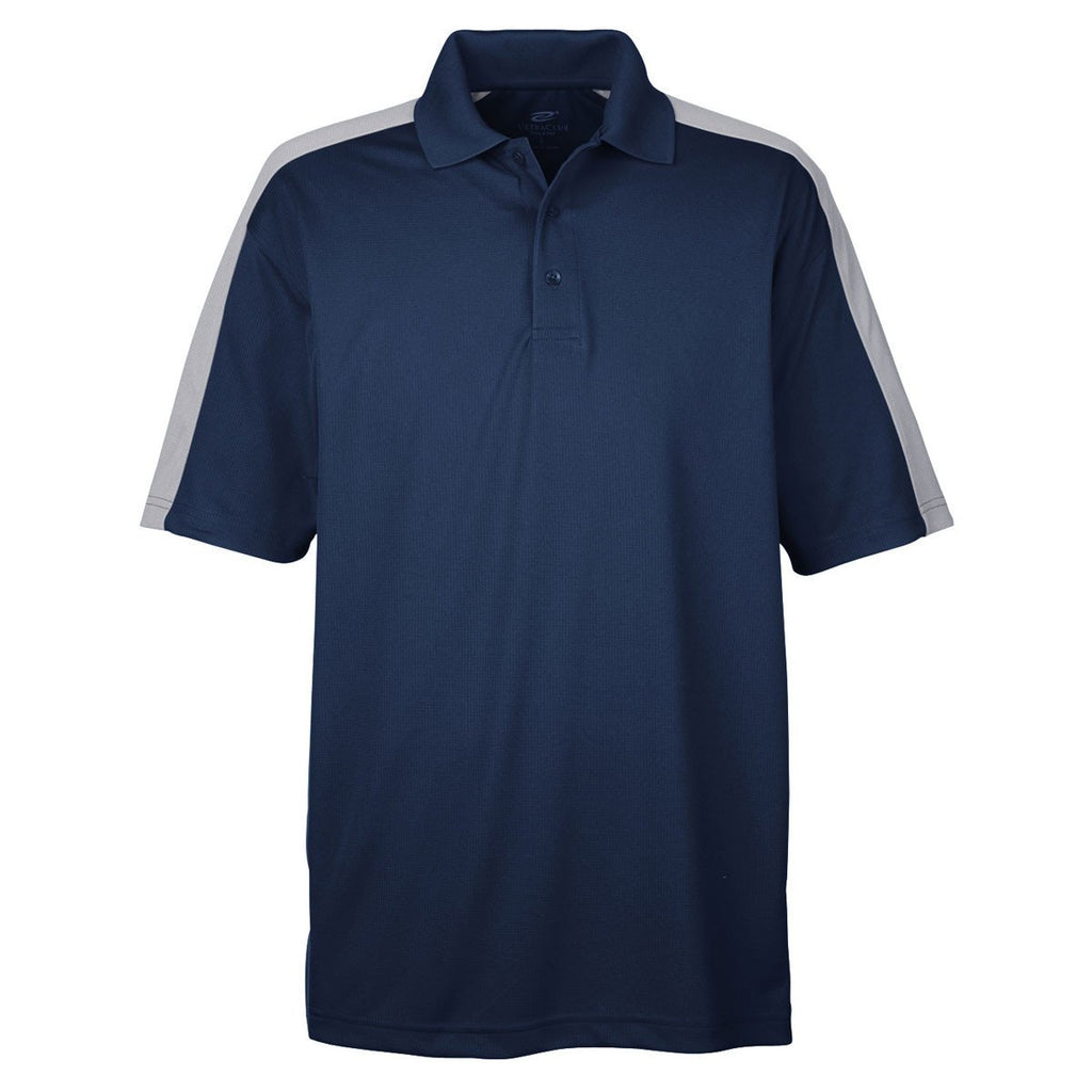 UltraClub Men's Navy/Silver Cool & Dry Stain-Release Two-Tone Performance Polo