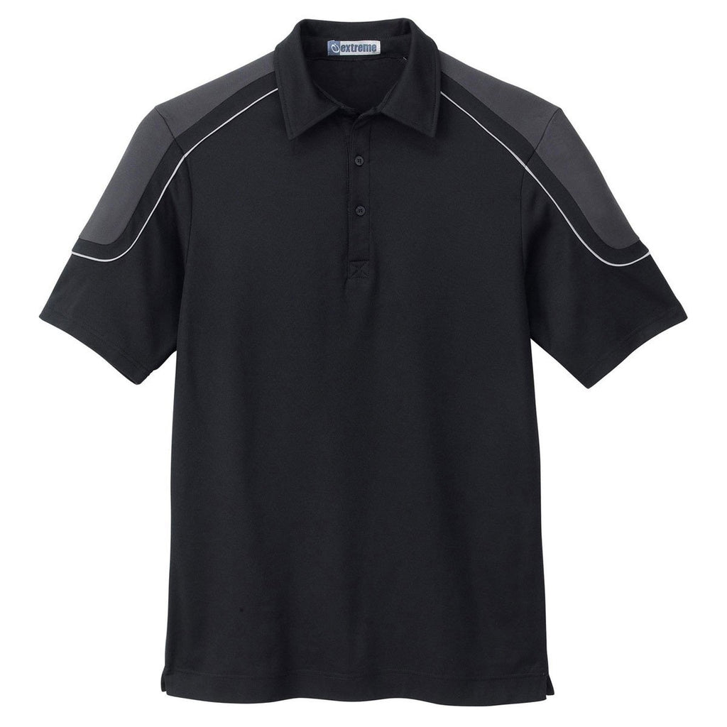 Side slits add stylish appeal to the Extreme Men's Black Edry Colorblock Polo, but the real value provided by the side slits is improved air circulation to cool the upper body. Moisture wicking technology quickly removes sweat to give you 100% dry and cool skin. The cotton and polyester blended polo endures countless wash cycles and exposure to strenuous work conditions. Antimicrobial properties ensure the wash cycles never go to waste by keeping you looking and smelling fresh throughout each workday. Attach your corporate logo to get the word out about your company in the community.Highlights