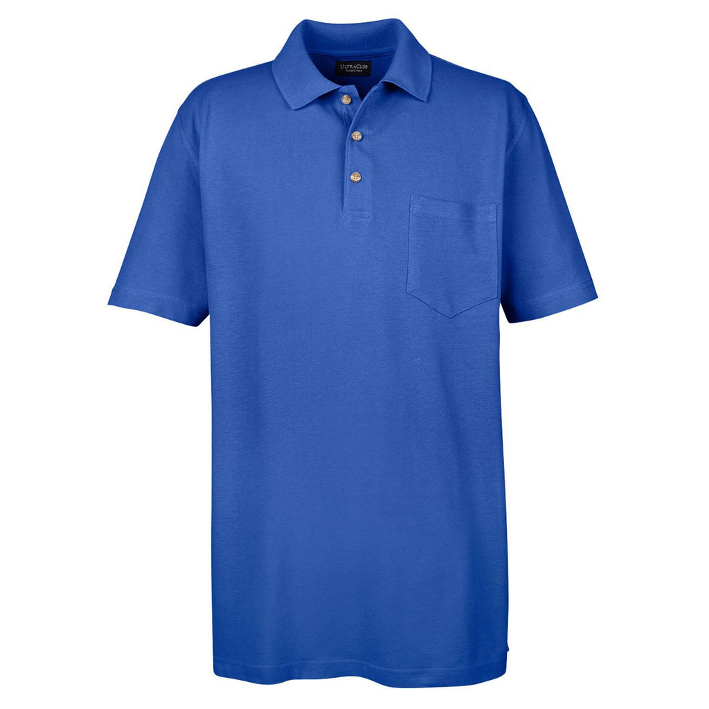 UltraClub Men's Royal Classic Pique Polo with Pocket