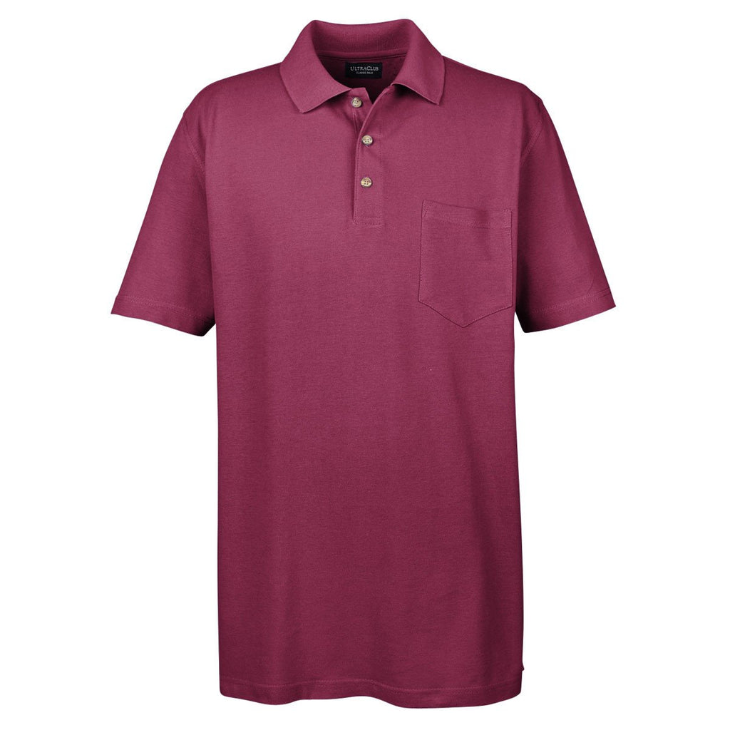 UltraClub Men's Burgundy Classic Pique Polo with Pocket