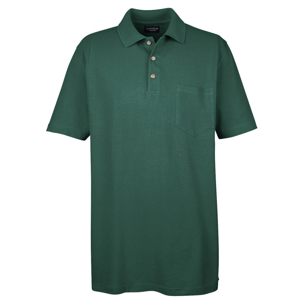 UltraClub Men's Forest Green Classic Pique Polo with Pocket