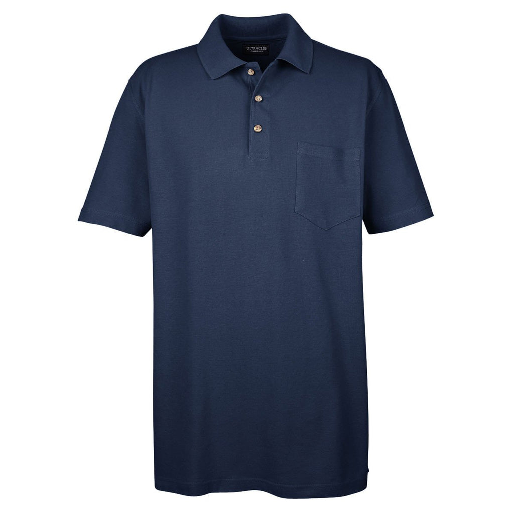 UltraClub Men's Navy Classic Pique Polo with Pocket