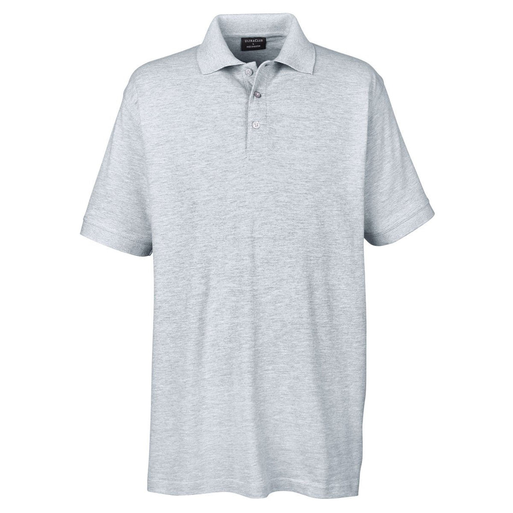 There is nothing basic about the UltraClub Men's Heather Grey Basic Pique Polo. Super smooth 100% cotton pique produces a highly comfortable polo that you can wear throughout the day. Bio-polish with a silicone finish adds luster to the polo, which glistens under the bright lights of a fancy corporate dinner. The three-button placket and dyed-to-match buttons present a refined appearance that tells everyone you have got it together. Tell everyone about your company by adding a custom logo to the large imprint area. The sleek pique polo offers you the ultimate corporate gift for your employees.Corresponding Women's Style: UltraClub Women's Heather Grey Basic Pique Polo