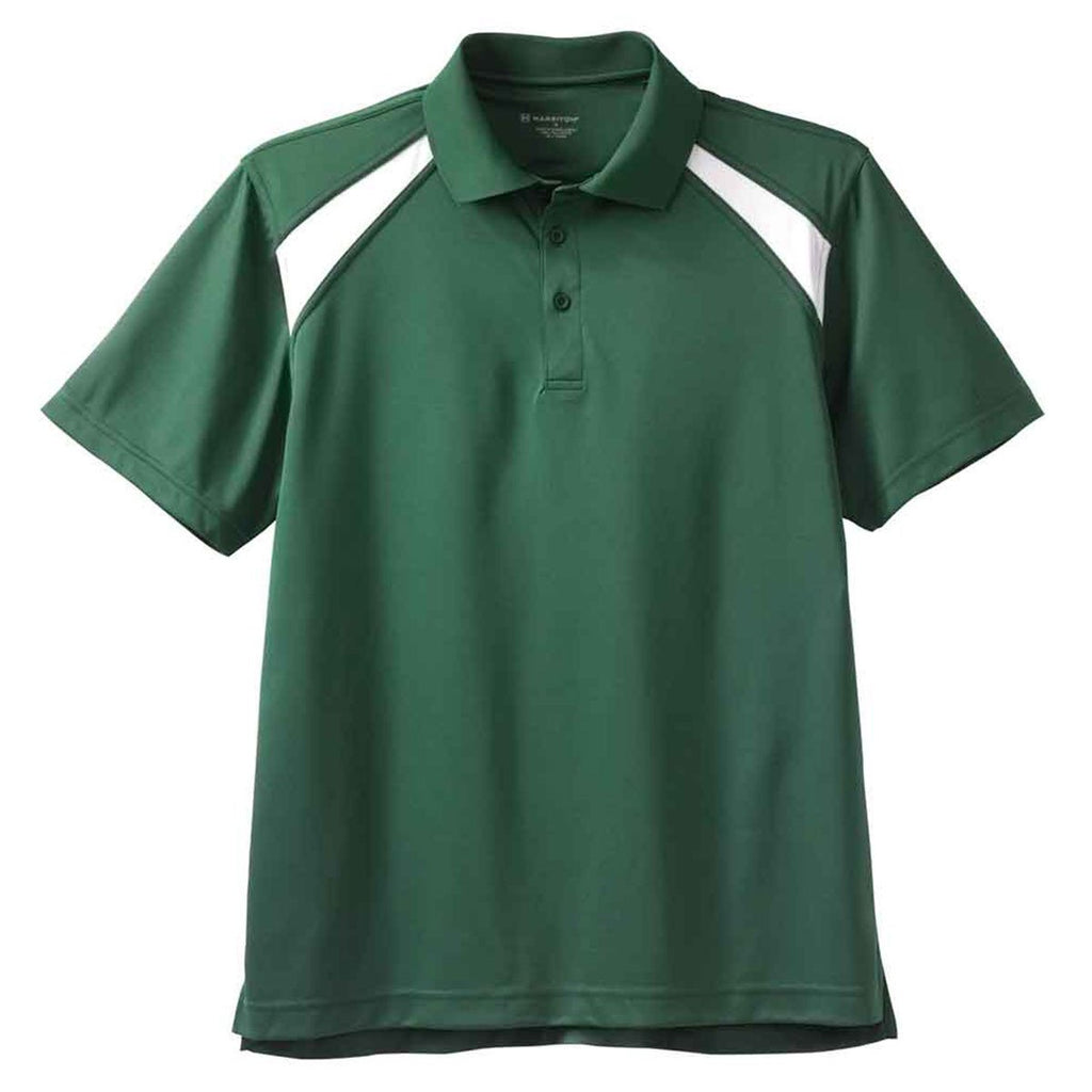 Harriton Men's Dark Green/White 4 oz. Polytech Colorblock Polo