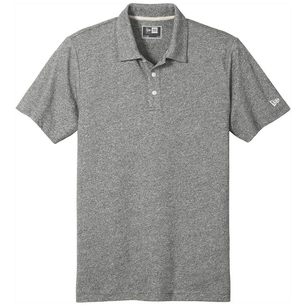 Look and feel great in a custom embroidered New Era Men's Shadow Grey Twist Slub Polo. Made of a 60.40 cotton rich poly blend, this polo is a must have as company uniforms. Add a corporate embroidery to create unique employee looks or a custom logo to use for corporate events. The heat transfer label means no tags to deal with and the New Era flag logo demonstrates quality. A three button placket and self-fabric collar create the iconic polo look that can be worn for both fun and function. Side vents mean movement is not limited so employees can stay on task.Highlights