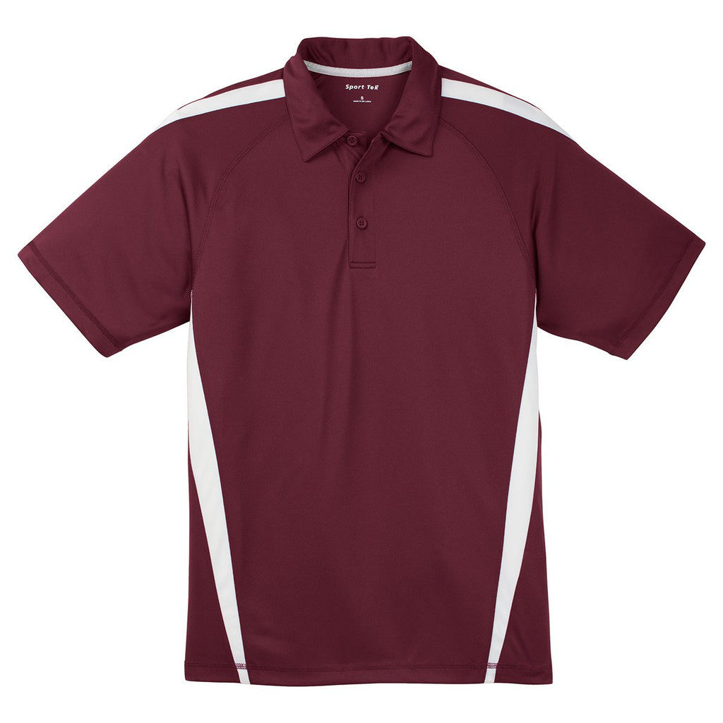 Sport-Tek Men's Maroon/ White PosiCharge Micro-Mesh Colorblock Polo