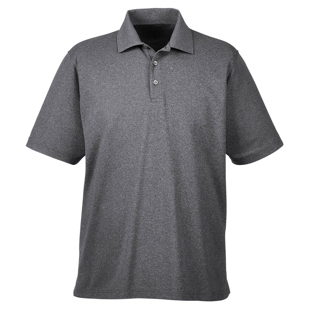 Wear the UltraClub Men's Black Heather Heathered Pique Polo for all occasions. The multi-purpose pique polo works as a dress shirt to put on for work, as well as a sleek short-sleeve shirt for attending a city council meeting. Anti microbial properties prevent the polo from succumbing to all day use. Moisture wicking technology quickly absorbs and removes sweat to cool the skin. The 100% heathered polyester pique polo resists the types of rips and tear that ruin other polos. Side slits and the three-button placket convey a professional image that gets you noticed at professional networking events. Add a custom logo to take advantage of the attention.