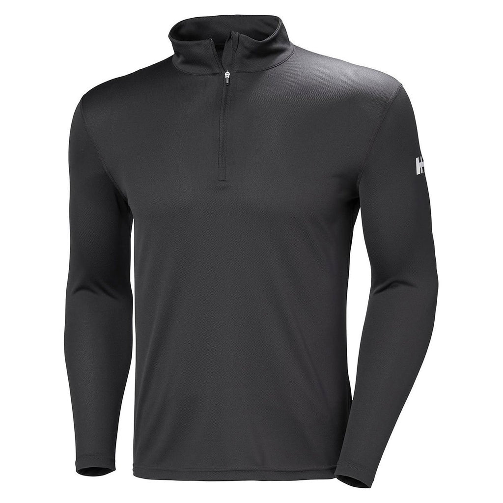 The Helly Hansen Men's Ebony Tech Half Zip is your company's solution for functional, cost-effective outerwear. Available in solid colors with the Helly Hansen logo on the sleeve, this shirt allows your company's custom logo to stand on its own right there on the chest. When it comes to industrial company clothing, a logoed supply of this product would be a sleek outer-shell company uniform for your workers out in the field. And it's not just outerwear. The sweat-absorbing technology provides comfort if worn as a single layer. It also would make a nice warmup jacket for corporate athletic teams.Highlights