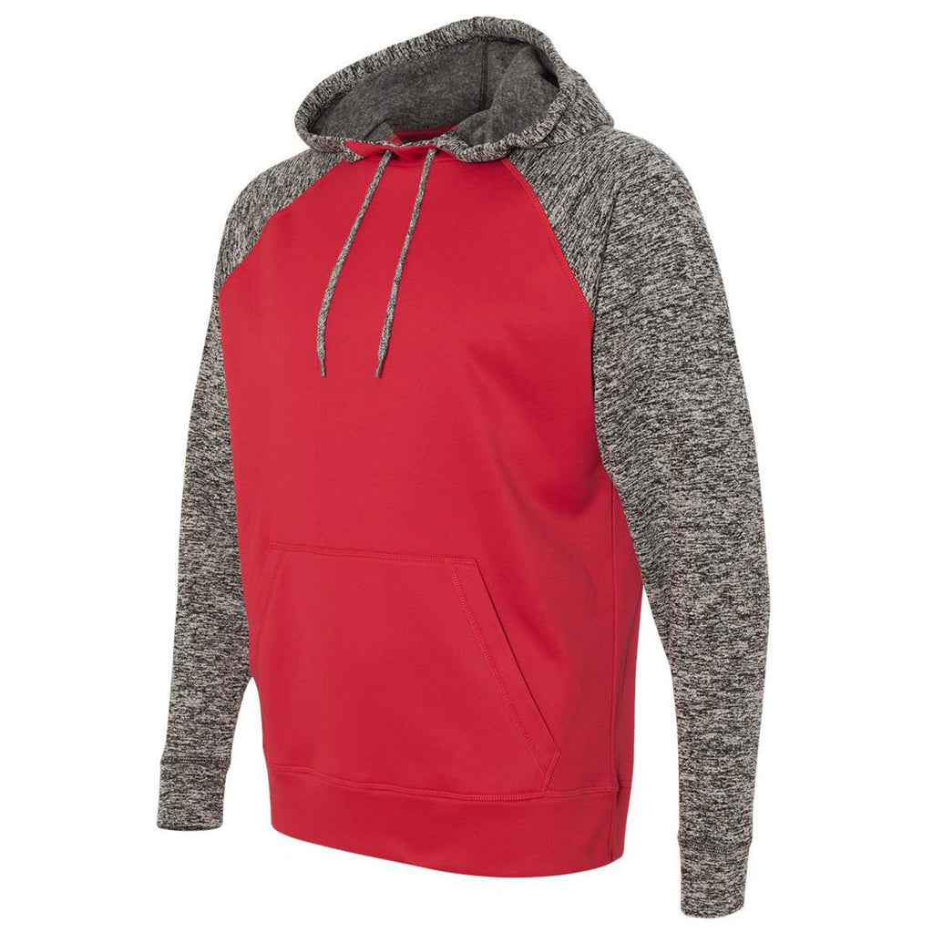 J. America Men's Red/Charcoal Fleck Colorblock Cosmic Fleece Hooded Pullover Sweatshirt