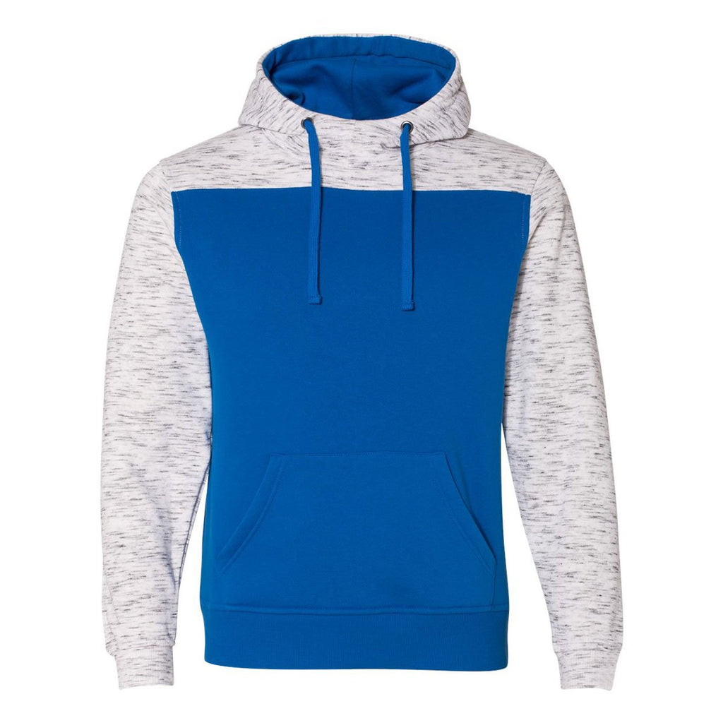 J. America Men's Royal/White Melange Fleece Colorblocked Hooded Pullover