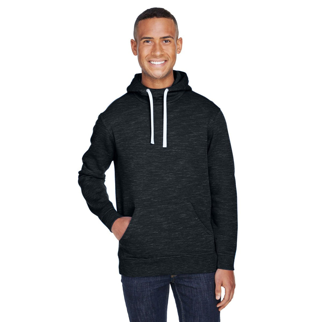 J. America Men's Black Melange Fleece Hooded Pullover Sweatshirt