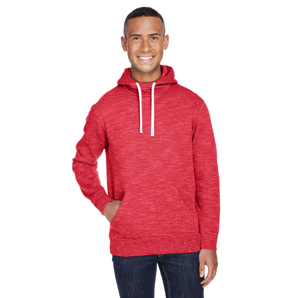 J. America Men's Red Melange Fleece Hooded Pullover Sweatshirt