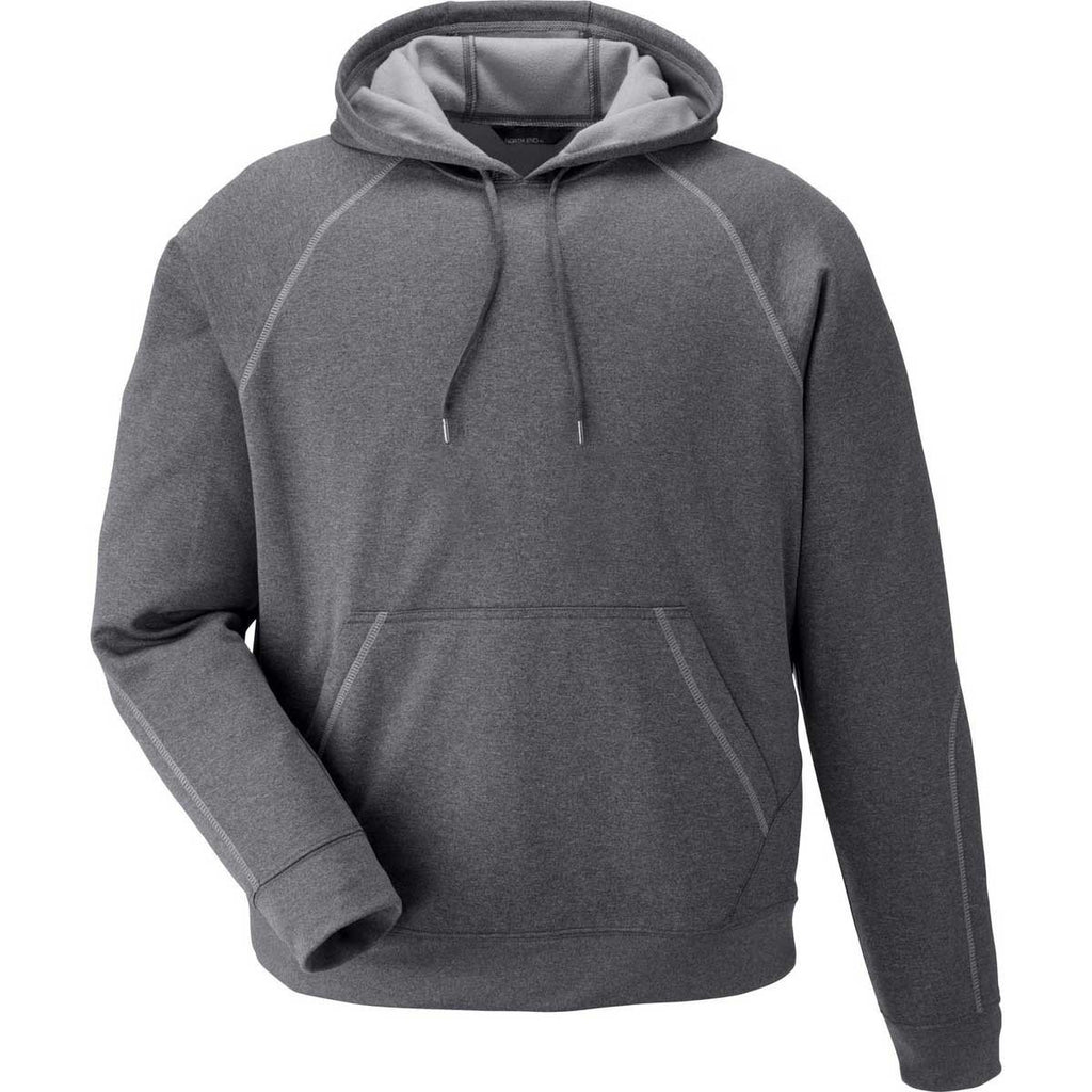 When the temperature drops like a rock, you want a hoodie that offers maximum protection against the onslaught of cold weather. The North End Men's Carbon Heather Pivot Performance Fleece Hoodie contains 100% polyester brushed back fleece to protect you against Old Man Winter. Moisture wicking technology ensures you can tighten the draw cord hood and not worry about sweat build up on the skin. Spandex matching waistband and rib cuffs adapt to body shape changes to ensure comfort. Warm your hands in the front pouch pocket that also acts as the perfect storage location for your valuables.Highlights