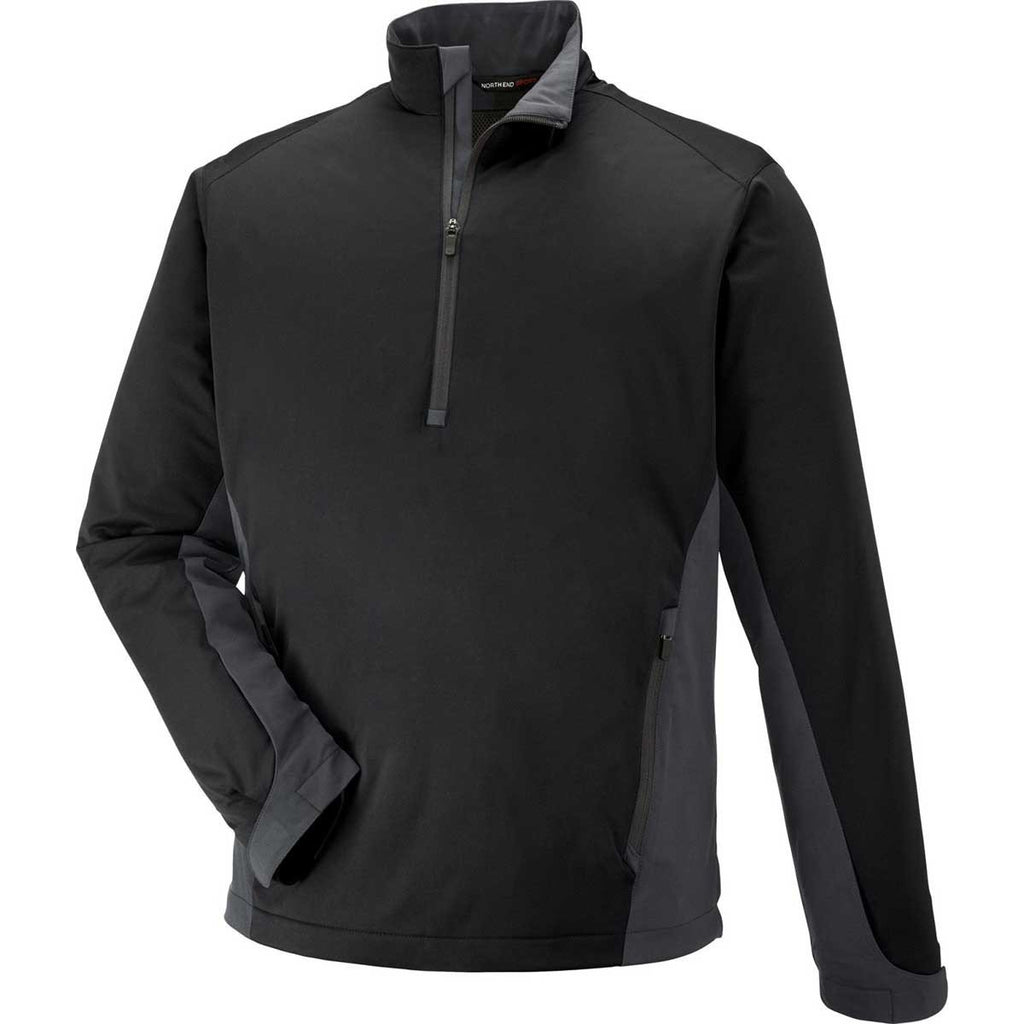 Lightweight 100% polyester dobby keeps the wind at bay during your outdoor recreational activities. The North End Men's Black Performance Stretch Wind Shirt includes a water resistant finish that ensures you remain dry every time Mother Nature makes an unexpected visit. Attach your corporate logo to this stylish shirt to bolster your brand image within the community. Accent tipping on the rib knit neckline enhances the aesthetic appeal of the North End Men's Black Performance Stretch Wind Shirt. Semi-automatic lock rubber zipper pull-tabs never succumb to years of heavy use. The highly breathable materials quickly remove the perspiration that builds up in the office or on a job site.Highlights